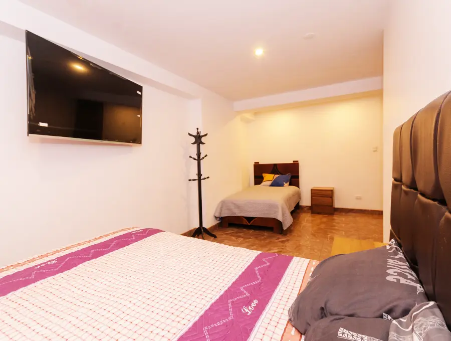 Ideal para amigos o pequeñas familias que buscan compartir una experiencia única en Cusco, nuestra habitación Doble ofrece el equilibrio perfecto entre comodidad y funcionalidad. Cuenta con una cama de dos plazas más una cama de plaza y media, esta habitación promete un sueño tranquilo y renovador para todos los huéspedes.